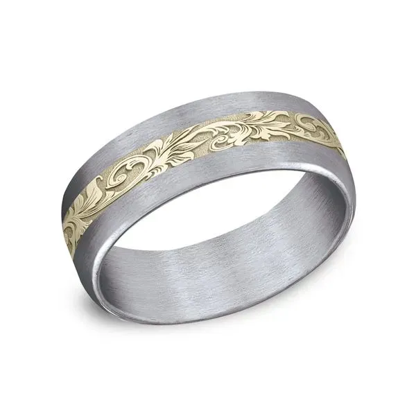 Other alternative materials are also paired with traditional gold inlays. This mixed-metal approach allows for a high-contrast look that appeals to the modern groom who values a rugged, artisanal feel.